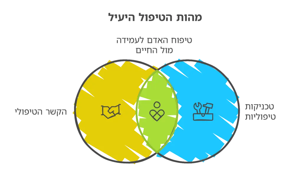 הקשר הטיפולי הוא לא טכניקה. אבל מבחינתי הוא בסיס הזהב והמדד לטיפול נפשי-פסיכולוגי מיטיב. אין טעם לדבר על שום ״טכניקה״ או ״גישה״ אם אין קשר טיפולי אוהד, אוהב ומכבד. אני דוגל בלייצר למטופלים שלי מפגש בהם הם יכולים לפרוק את המעמסה היום-יומית: לצחוק, לבכות, להתאבל וגם לגדול. ללא קשר טיפולי חיובי, העבודה הטובה לא מתאפשרת.