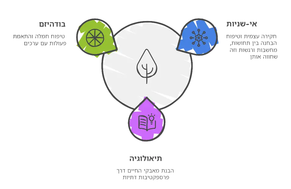 • פילוסופיה בודהיסטית: תרגול אי-היקשרות להפחתת סבל והבנת הארעיות כדי להקל על חרדה ועצב.